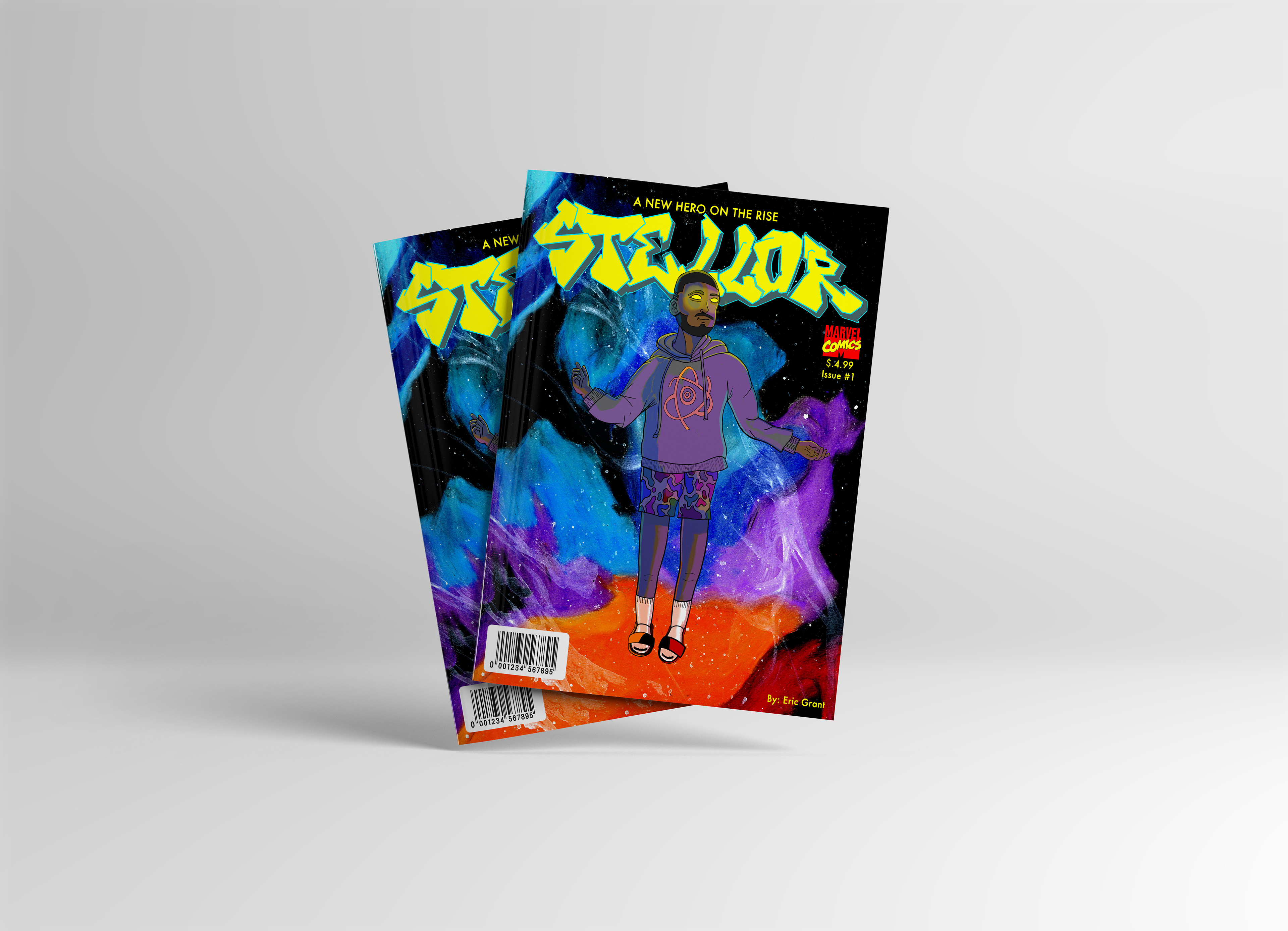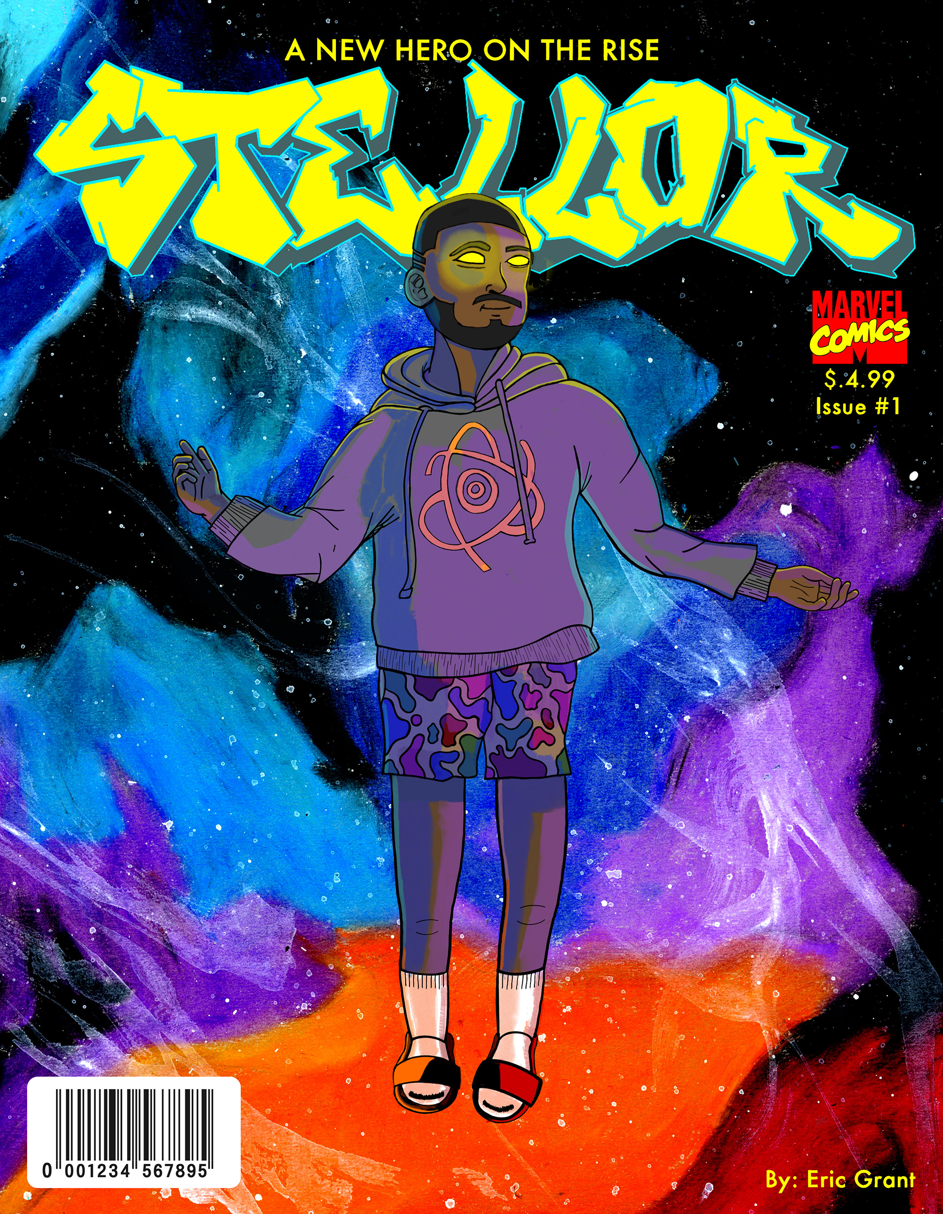 Our Market 2 Research Project was based on exploring avenues of illustration where I want to work. Representation is important to me so I wanted to create a comic book cover with a black main character who looks like me, walks and talks like me. I created the background using pastels on paper. Everything else was created digitally in Photoshop and Procreate. In this project, I learned about cell shading and using color to influence shadow and highlight. My Market 1 Research Project was based on a simple illustration style and I used project 2 to challenge myself on things I struggled with technically.
