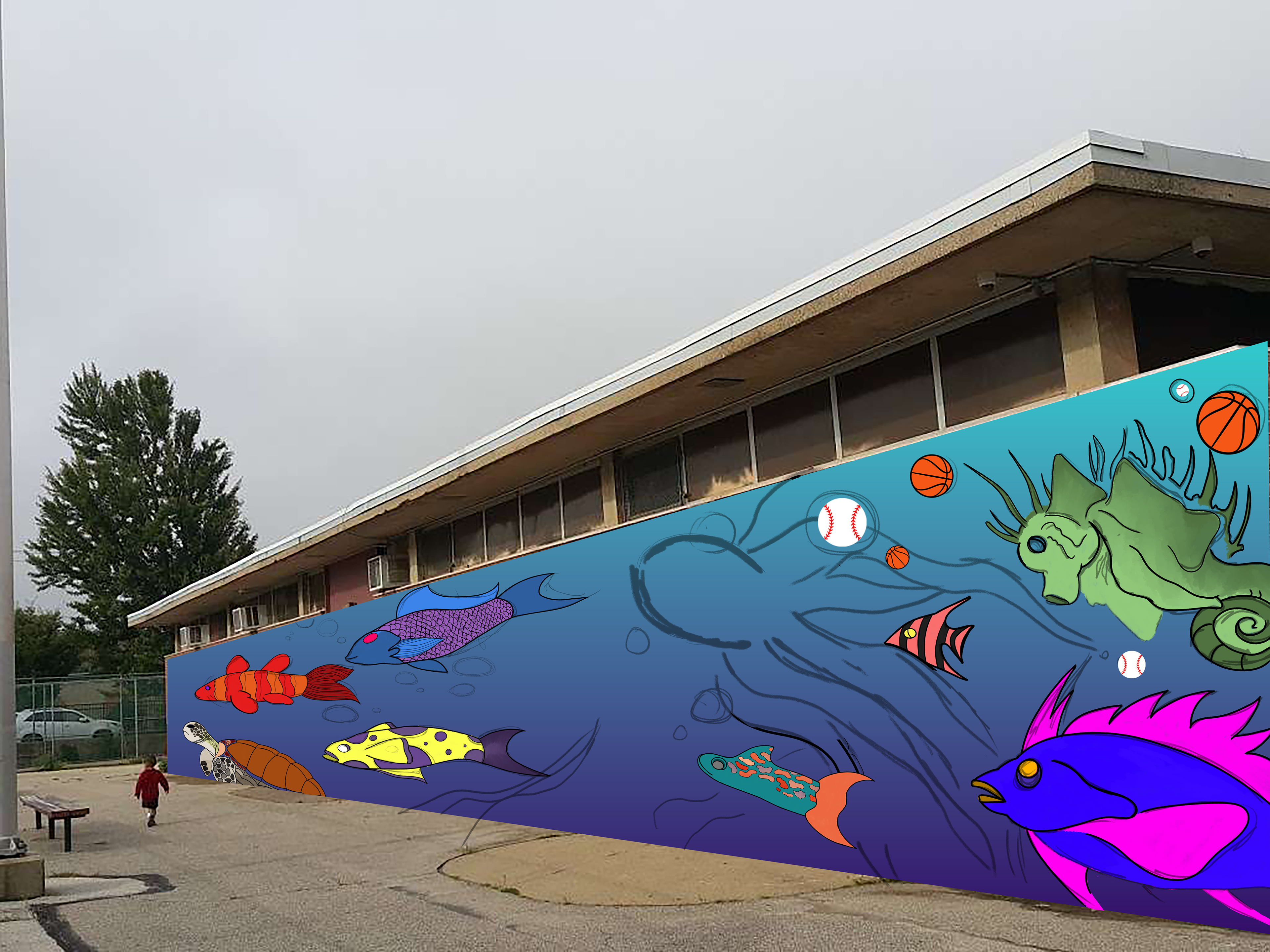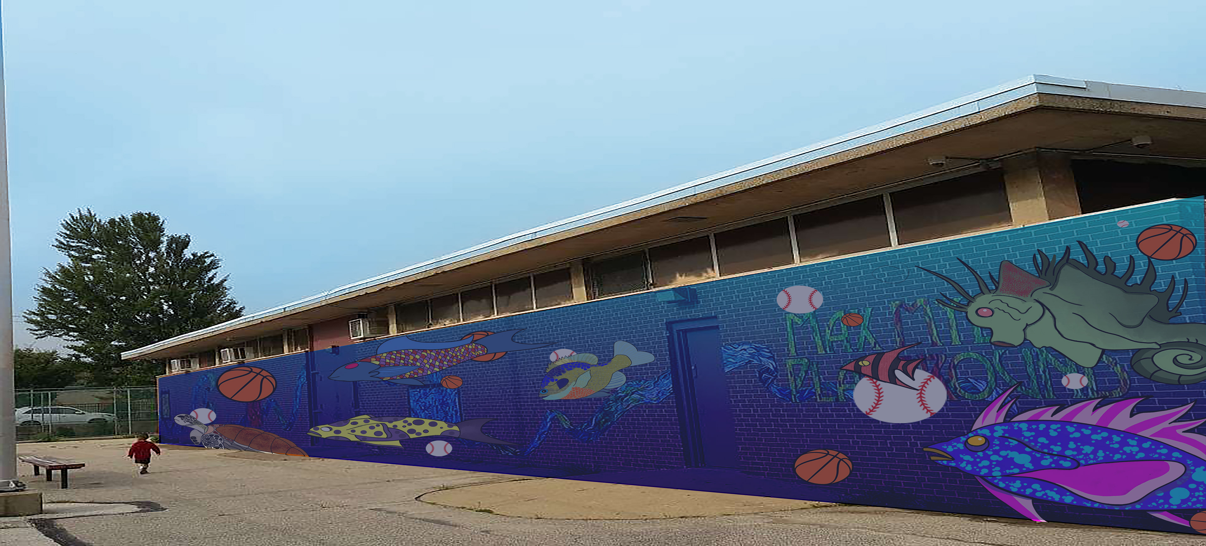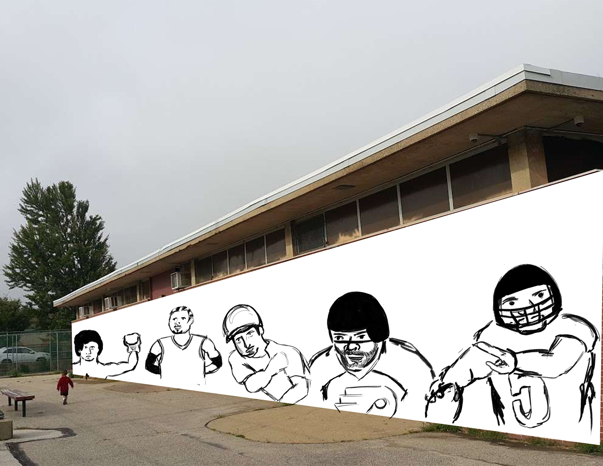 In this assignment, we were told to pick a public space that means a lot to us and create a mural for it. I chose Max Myers Recreation Center; a place I played basketball everyday after high school as well as worked at as a summer camp counselor. There is already a mural that exists there. It showcases different colors of broken glass that represent the different types of people/families and neighborhoods that make Northeast Philly.