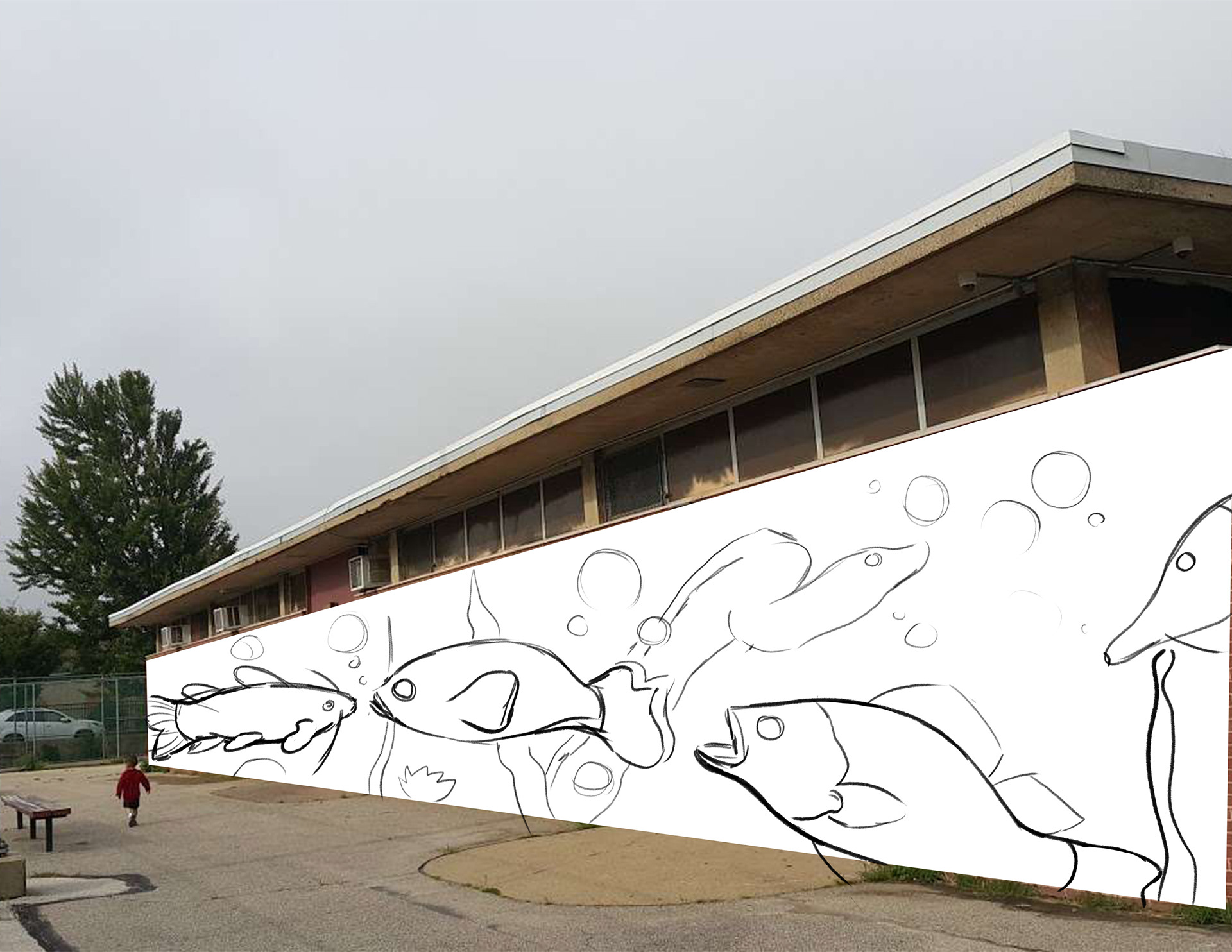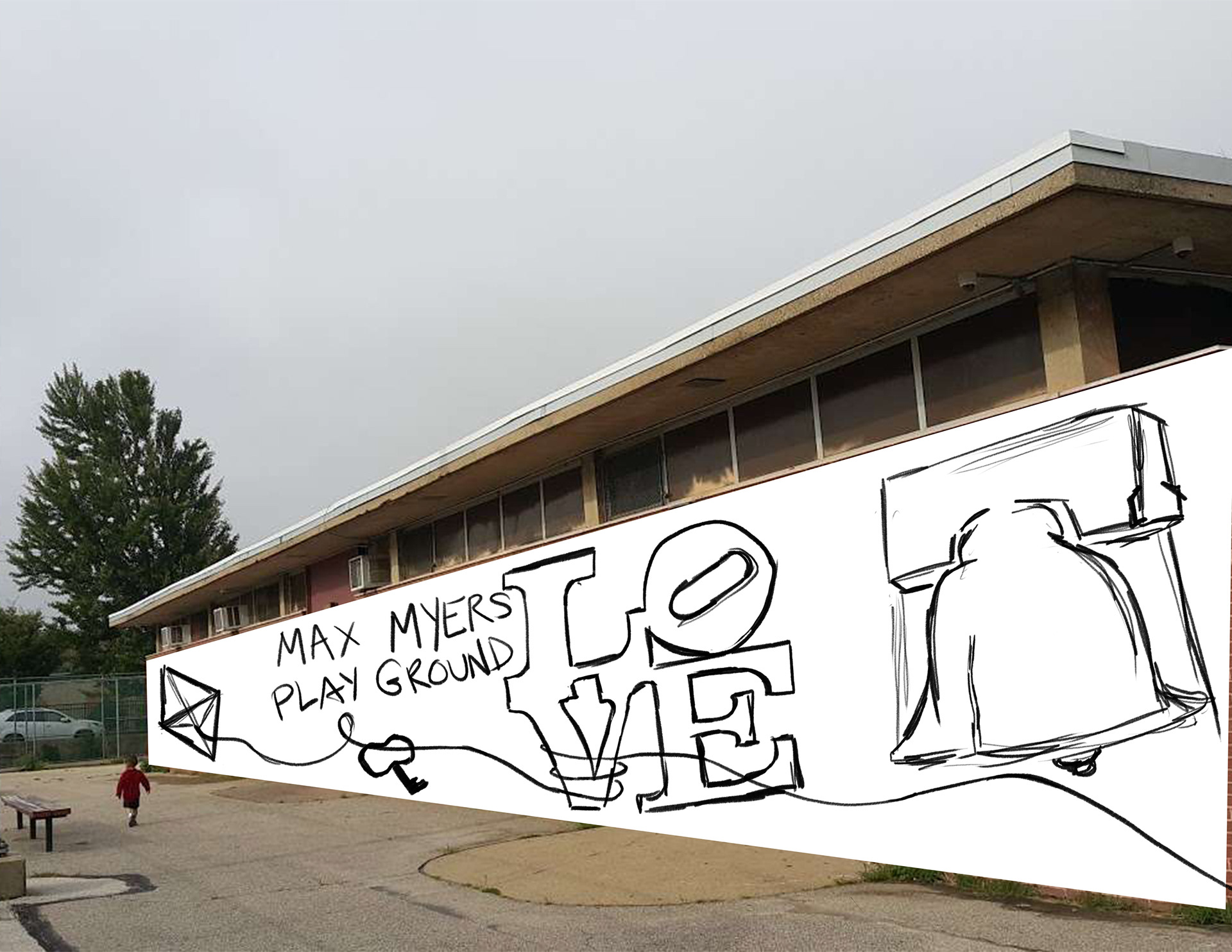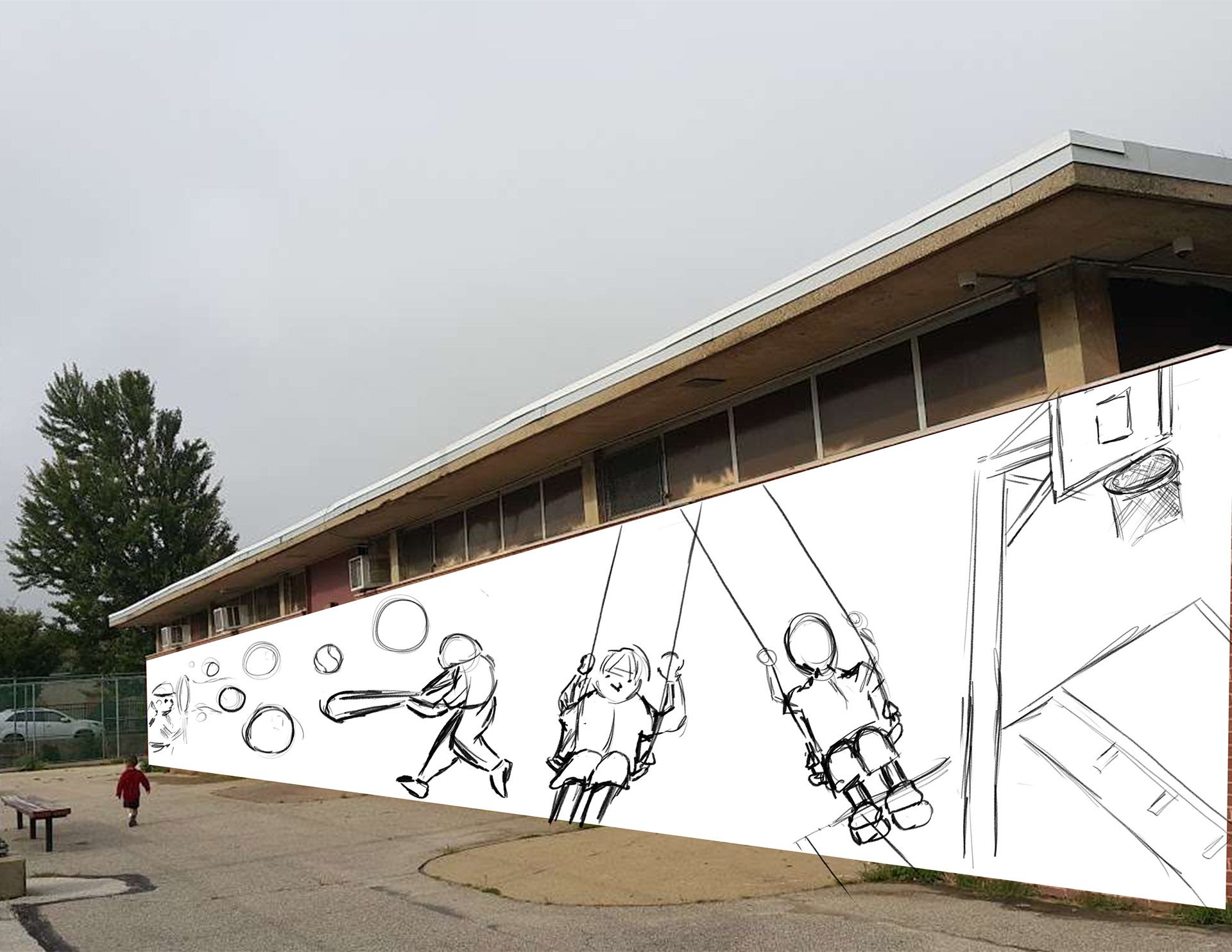 In this assignment, we were told to pick a public space that means a lot to us and create a mural for it. I chose Max Myers Recreation Center; a place I played basketball everyday after high school as well as worked at as a summer camp counselor. There is already a mural that exists there. It showcases different colors of broken glass that represent the different types of people/families and neighborhoods that make Northeast Philly.